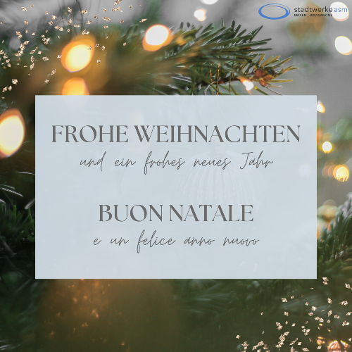 Am Mittwoch, 24.12.2025 (Heiligabend), und am Mittwoch, 31.12.2025 (Silvester) bleiben der Kundenschalter sowie die Büros der Stadtwerke Brixen geschlossen.